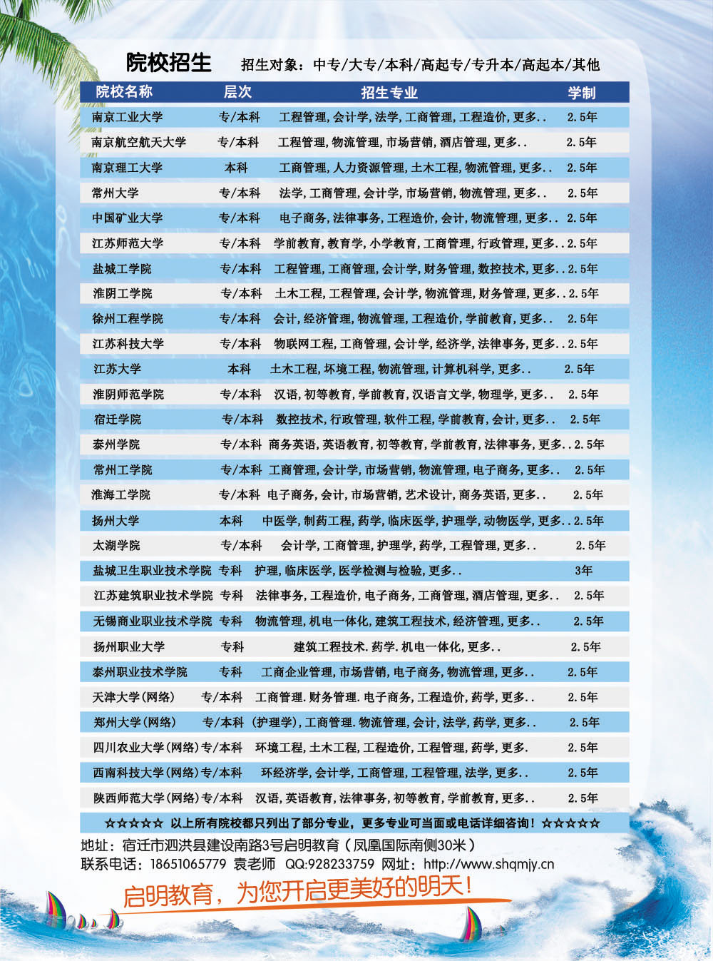 泗洪启明教育招生简章