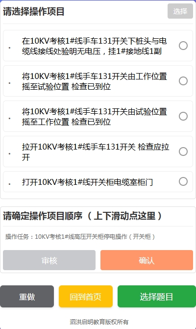 错误的干扰选项:将10KV教育1#线手车131开关由试验位置摇至工作位置 检查已到位。