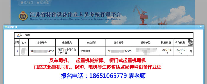 叉车司机N2、起重机械指挥Q3、桥门式起重机司机Q4、门座式起重机司机Q6、锅炉、电梯等-江苏质监特种设备作业证
