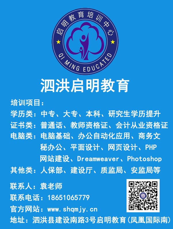 泗洪启明教育提供各种职业资格证书培训考试报名服务: