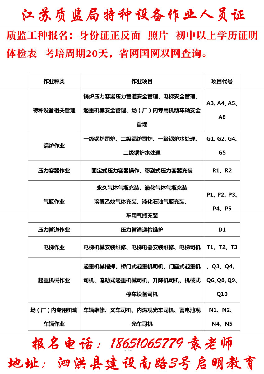泗洪质监局叉车证等特种设备作业证到哪里报名?