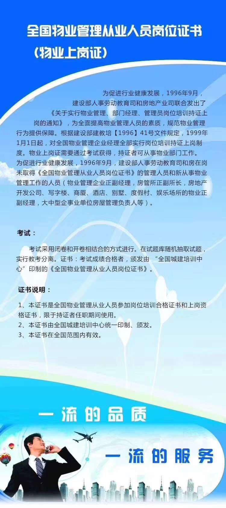 泗洪物业从业资格证(物业经理)、物业项目经理资格证考培