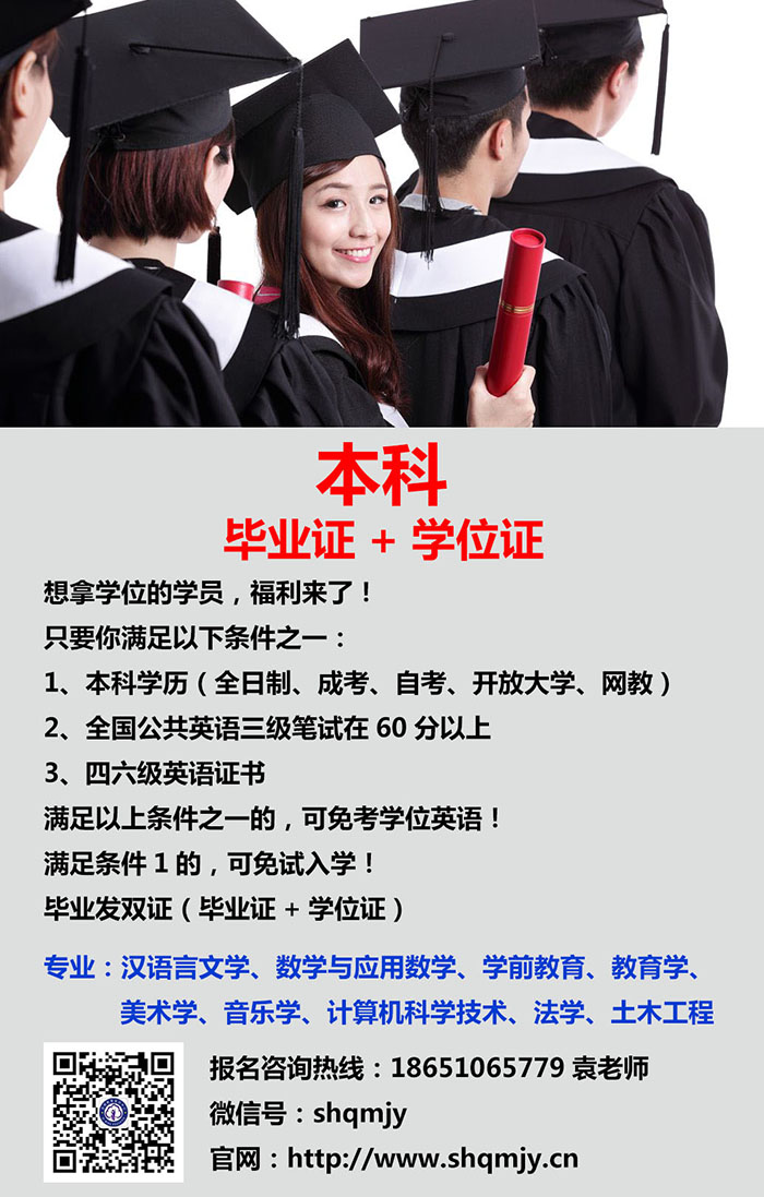 来吧,到泗洪启明教育报名本科二学历,可以免试入学,且有本科毕业证即可抵免学位英语考试,轻松毕业、轻松拿学位,毕业发双证!