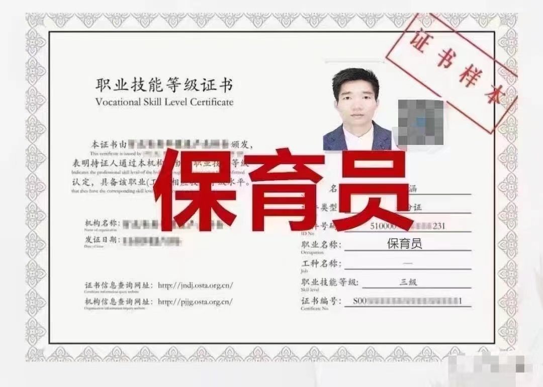 考试合格后由人保部第三方鉴定机构统一颁发职业技能等级证书,证书分为初级(五级)、中级(四级)、高级(三级),二级(技师)一级(高级技师)五个等级,级别是证明能力水平的程度,如果是零基础的学员要先从初级开始考,如果想越级报考可直接咨询泗洪启明教育刘老师,保育员证书,人保部官网查询,全国通用。