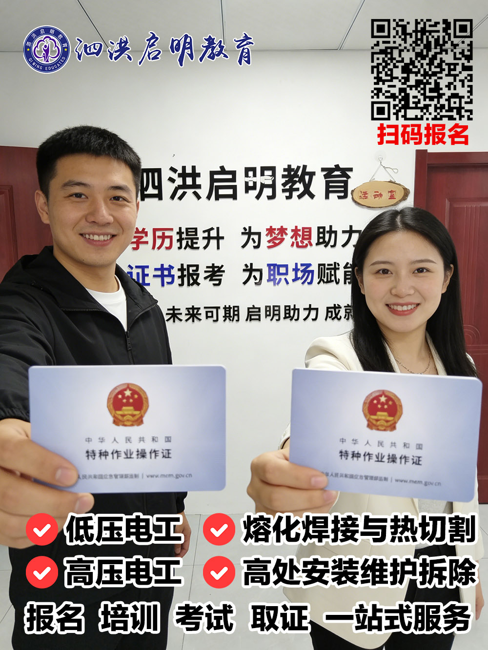 想正规考证、安心上岗,不用跑远路,家门口的靠谱机构就在这里!泗洪启明教育深耕本地职业技能培训报名十余年,是泗洪本土老牌实体机构,已为本地数千名从业者提供了专业、正规的特种作业操作证培训报名服务,政策熟知、流程规范、口碑过硬,是本地师傅们考证的放心之选!